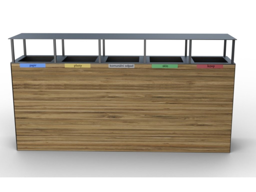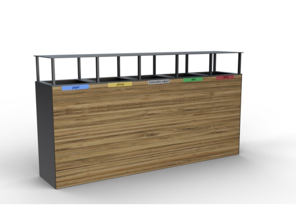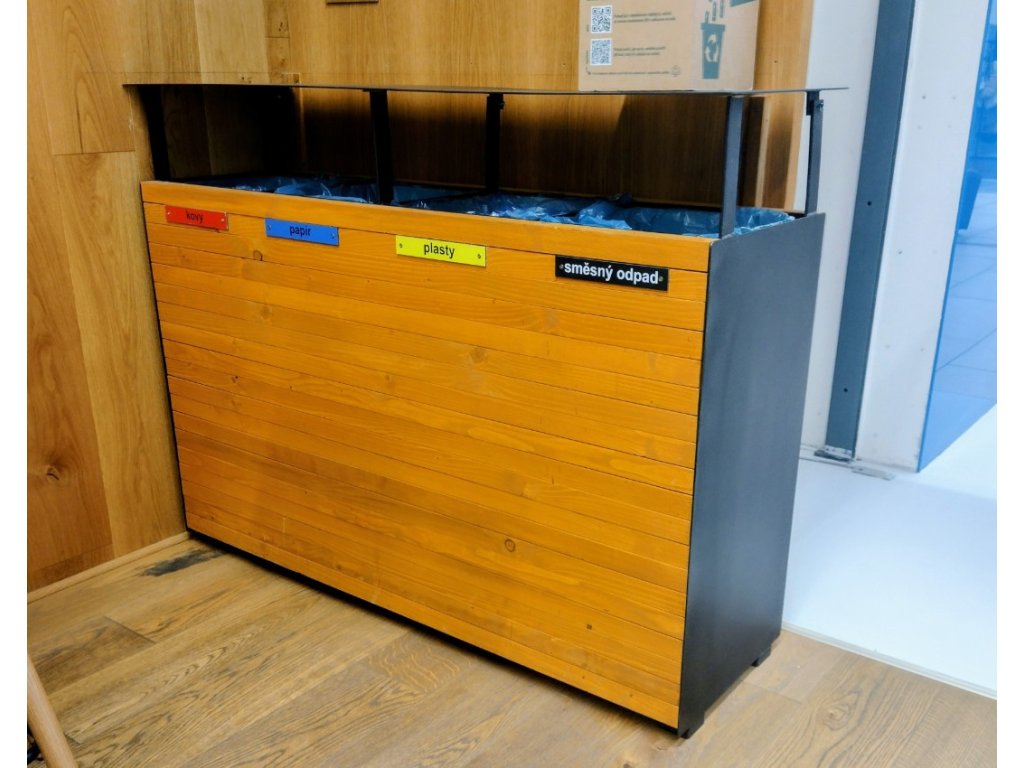- Označení koše pro třídění odpadu plast | papír | směsný odpad, alternativně kovy | sklo | nápojové kartony - značení je zaměnitelné a je součástí balení