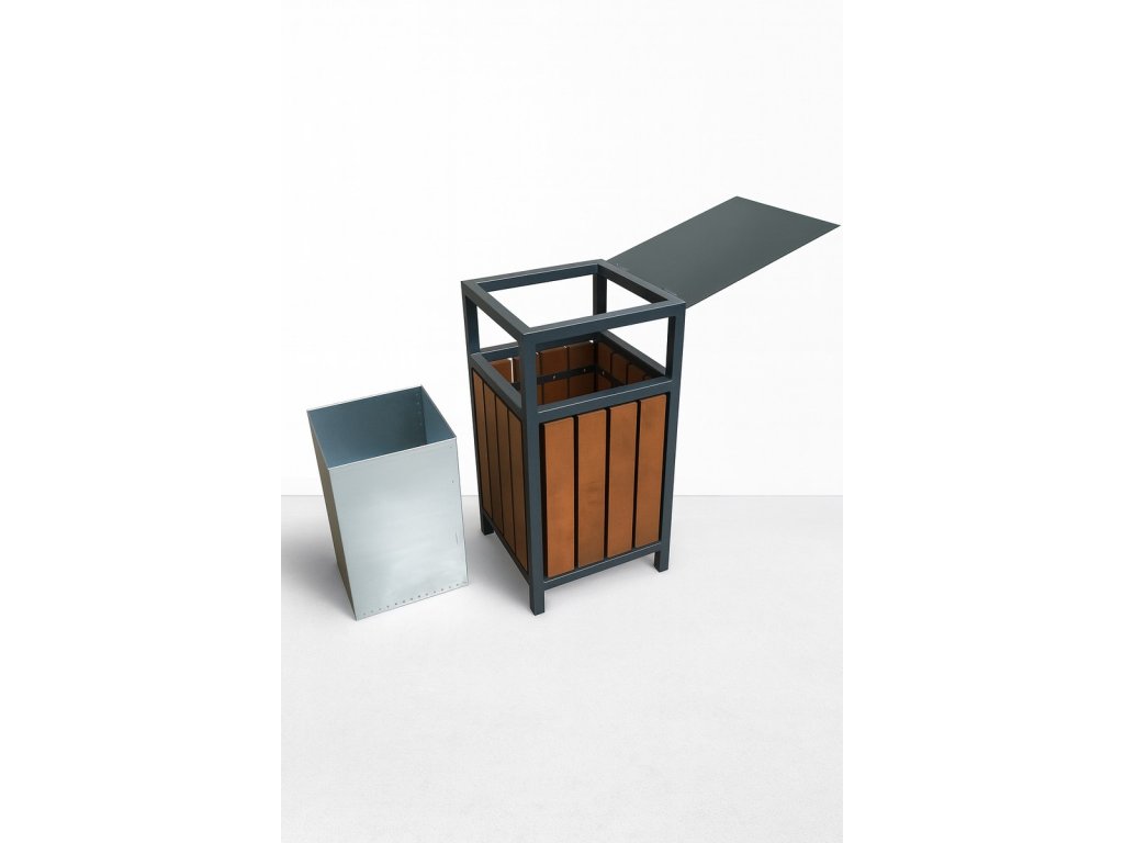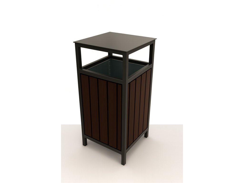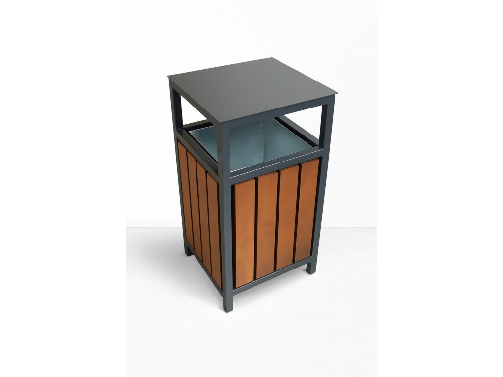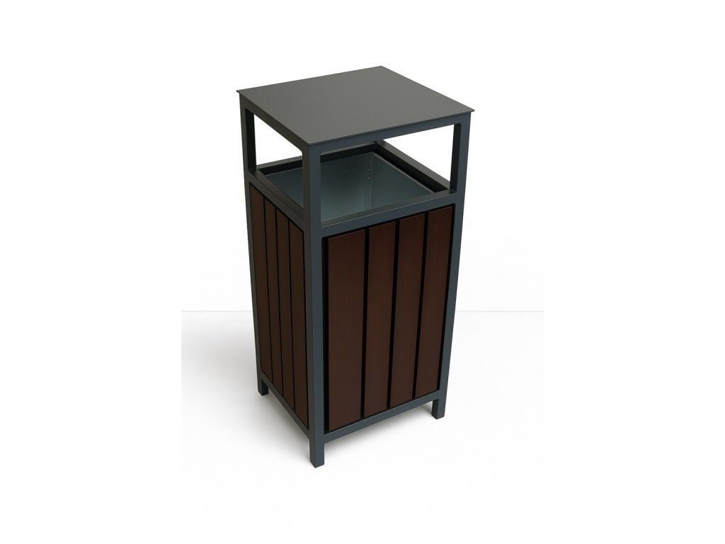 Moderní venkovní odpadkový koš v módním odstínu palisandr je vhodný do všech venkovních i vnitřních prostorů.